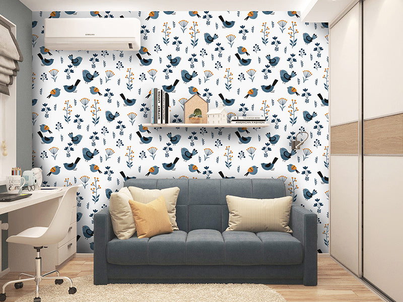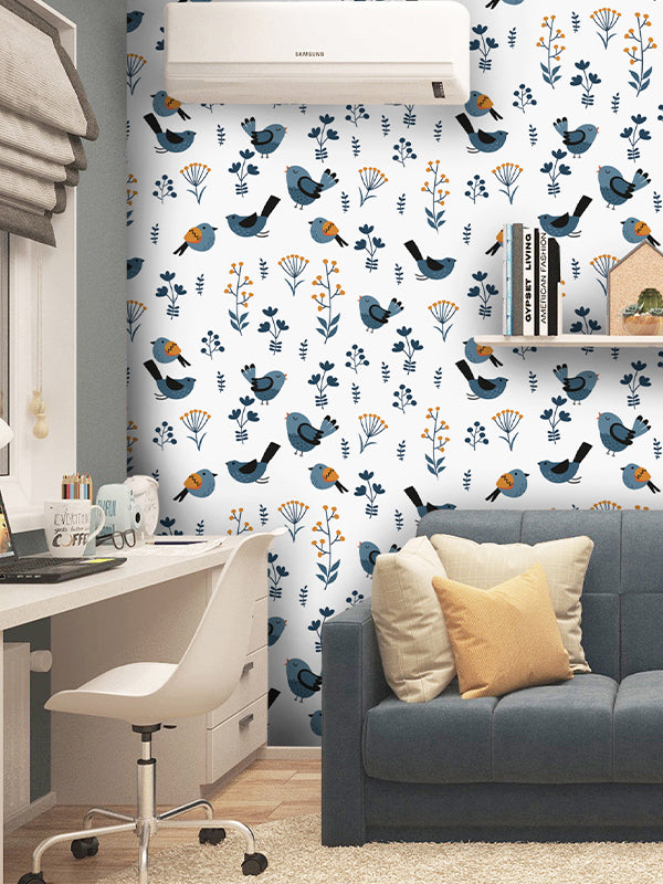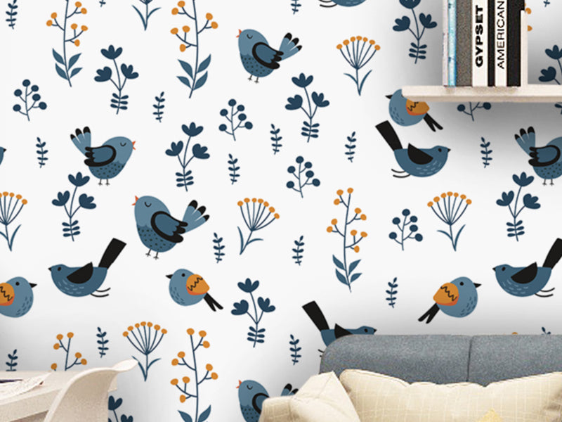 Papel tapiz aves y hojas