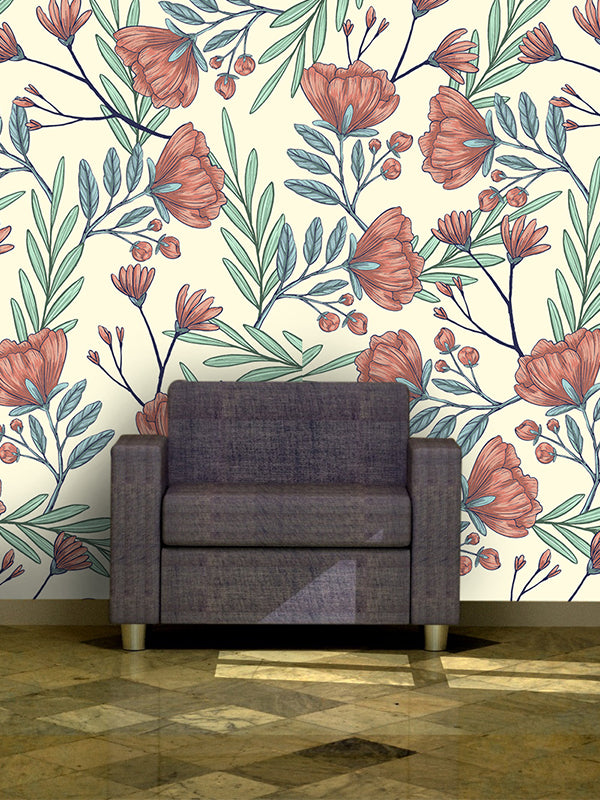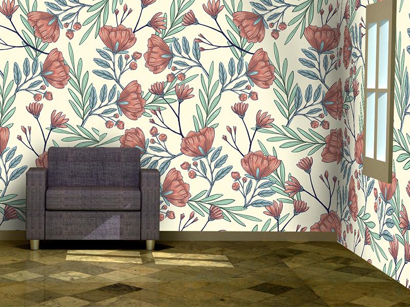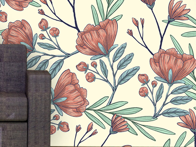 Papel tapiz flores dibujadas