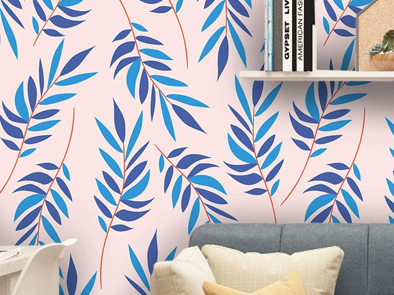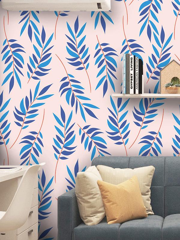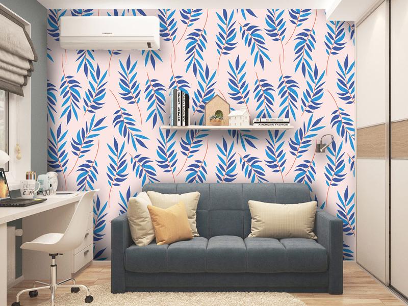 Papel tapiz hojas verticales azules