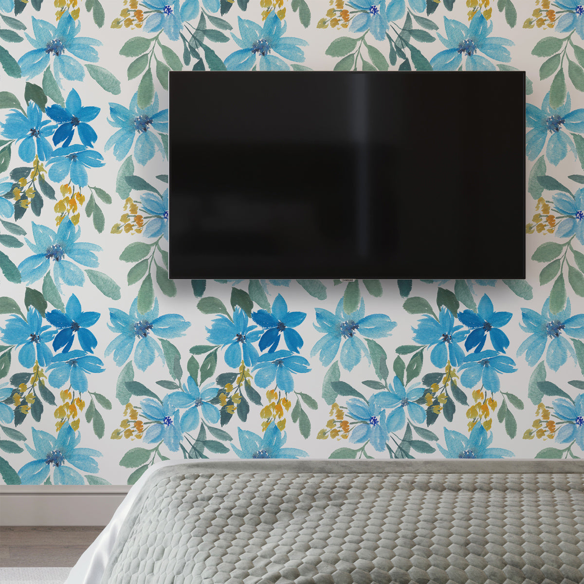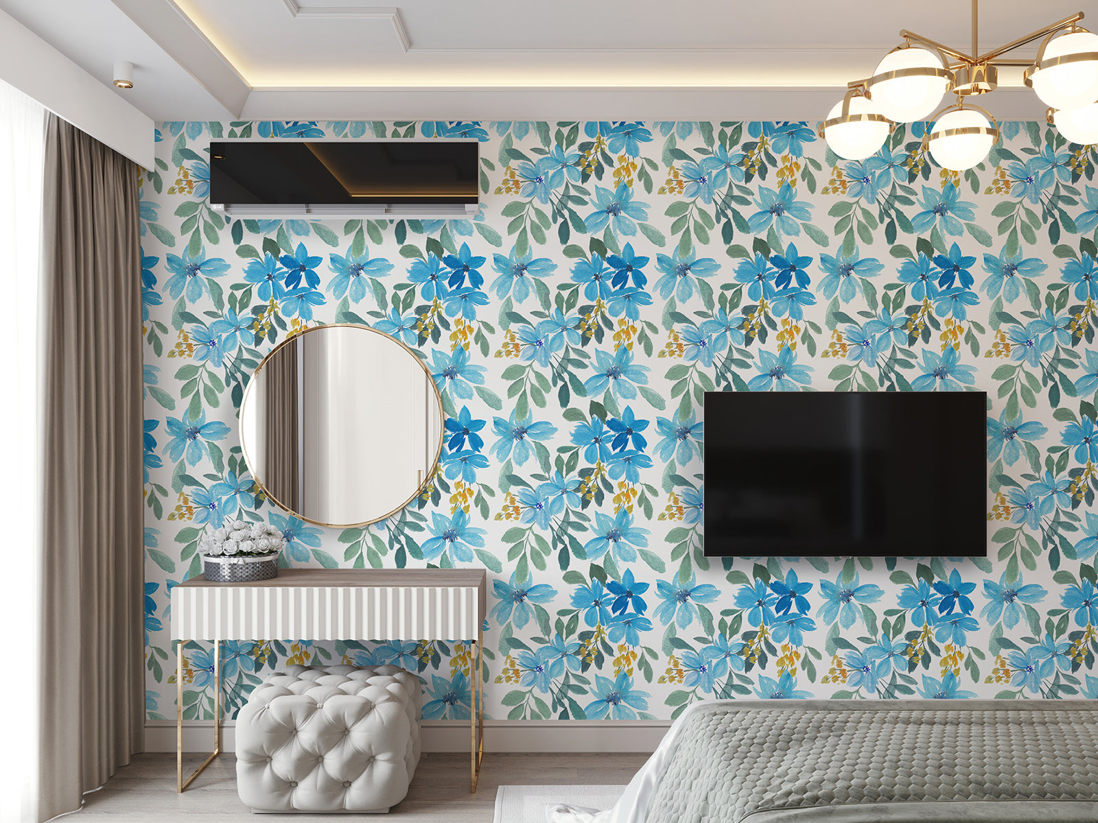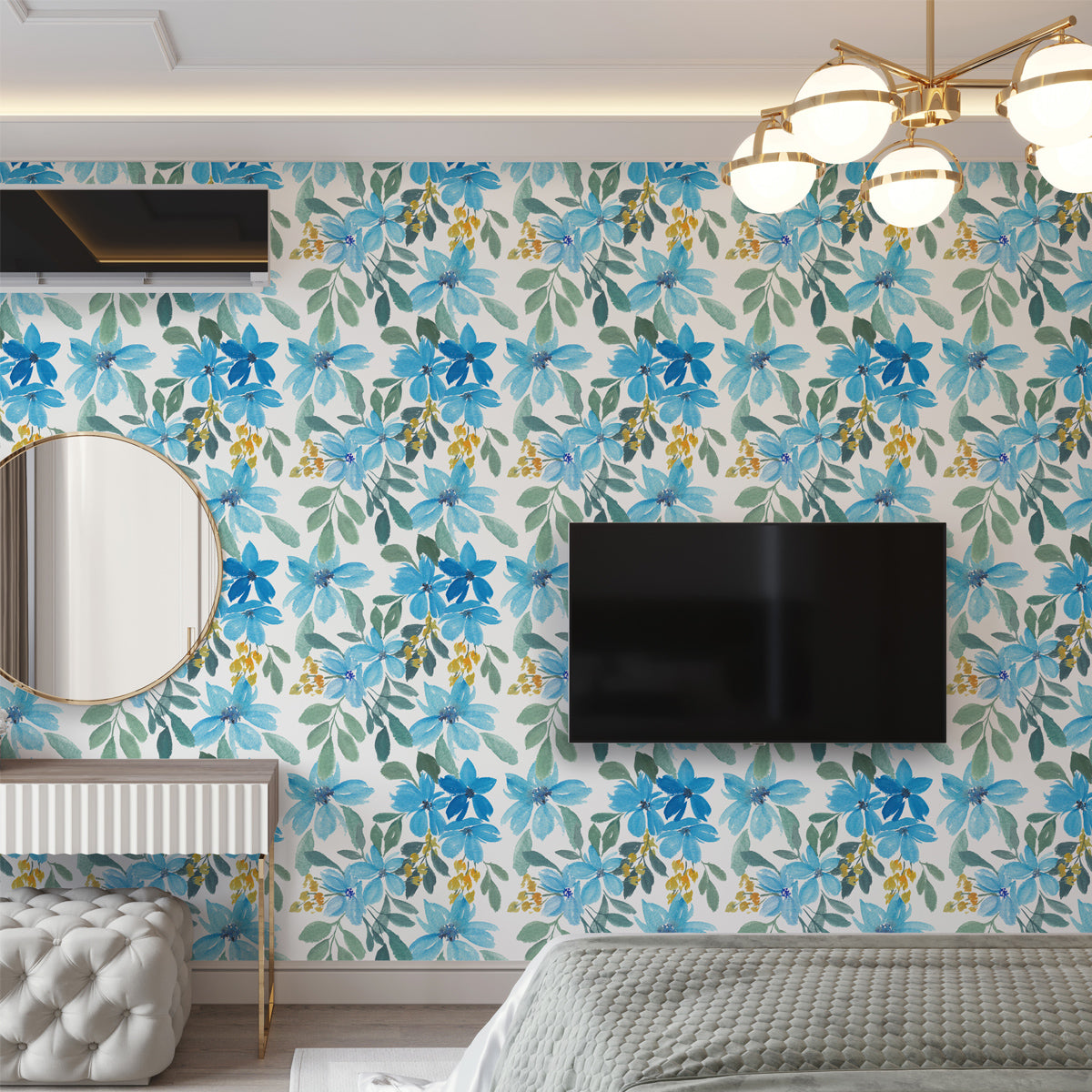 • Cargar imagen en el visor de la galería, Papel tapiz flores azules